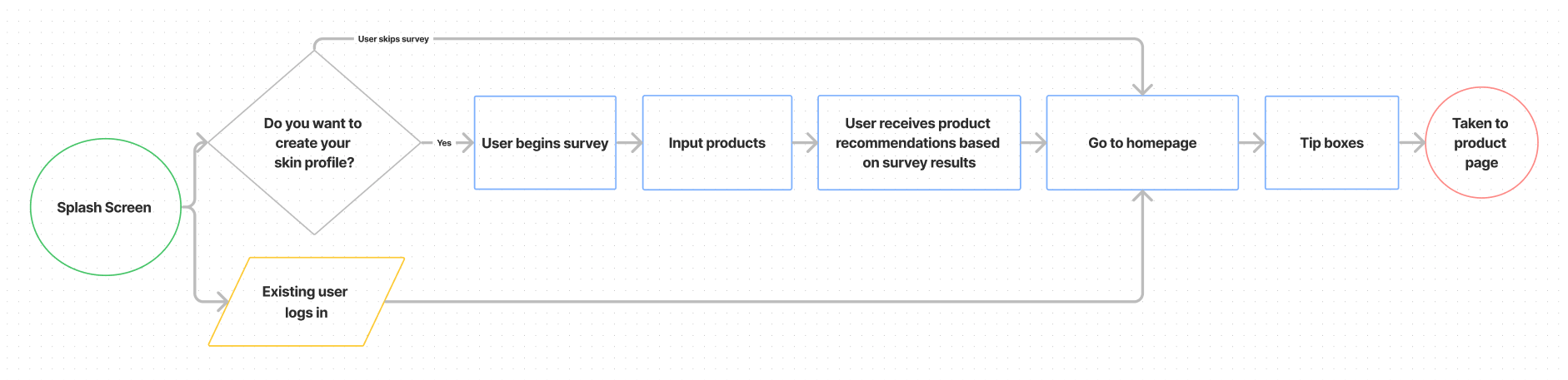 Responsible for the onboarding, the skin-type survey and results screens, and product pages, as well as style specification, branding and copy.
